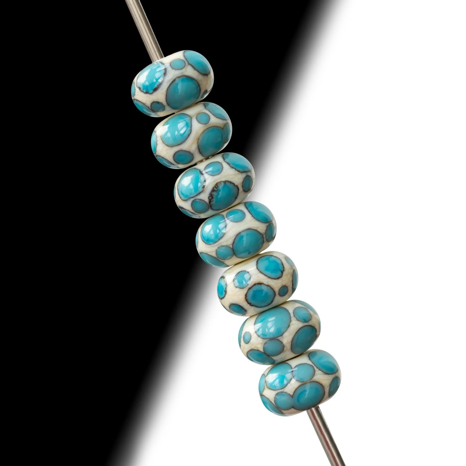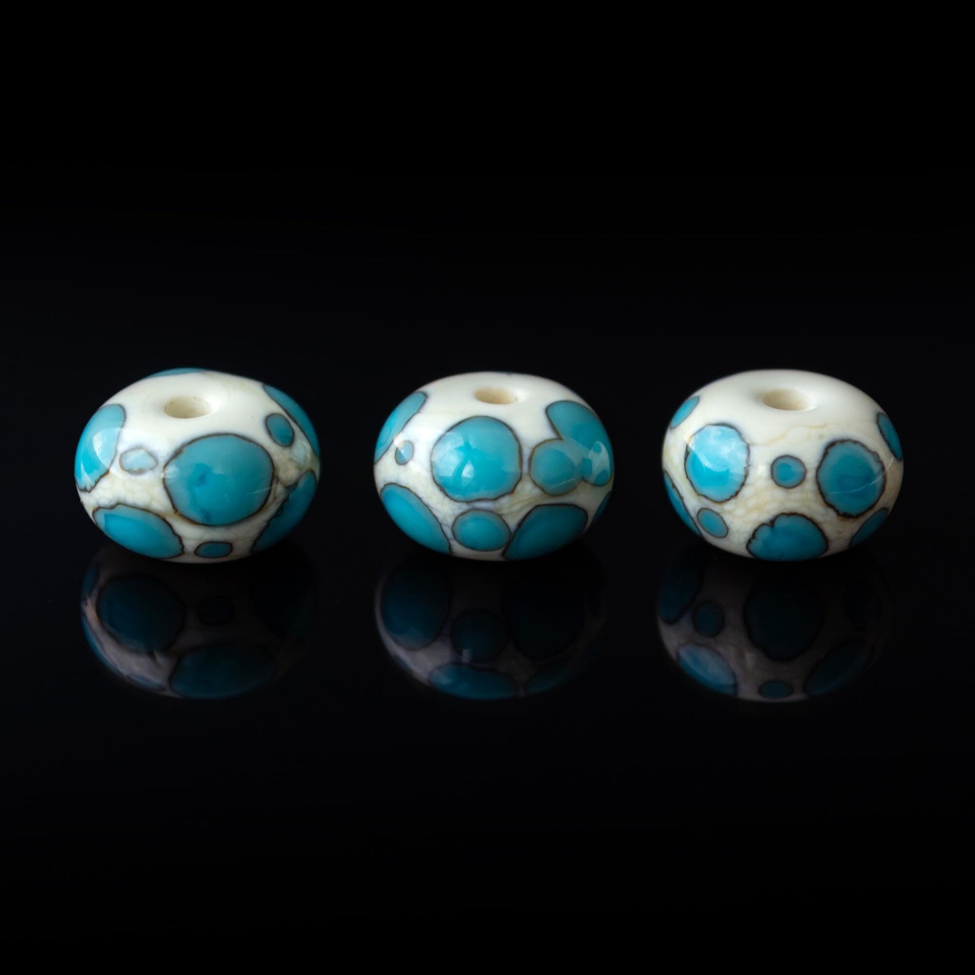 Beige and Blue Handmade Lampwork Dots Glass Spacer Beads