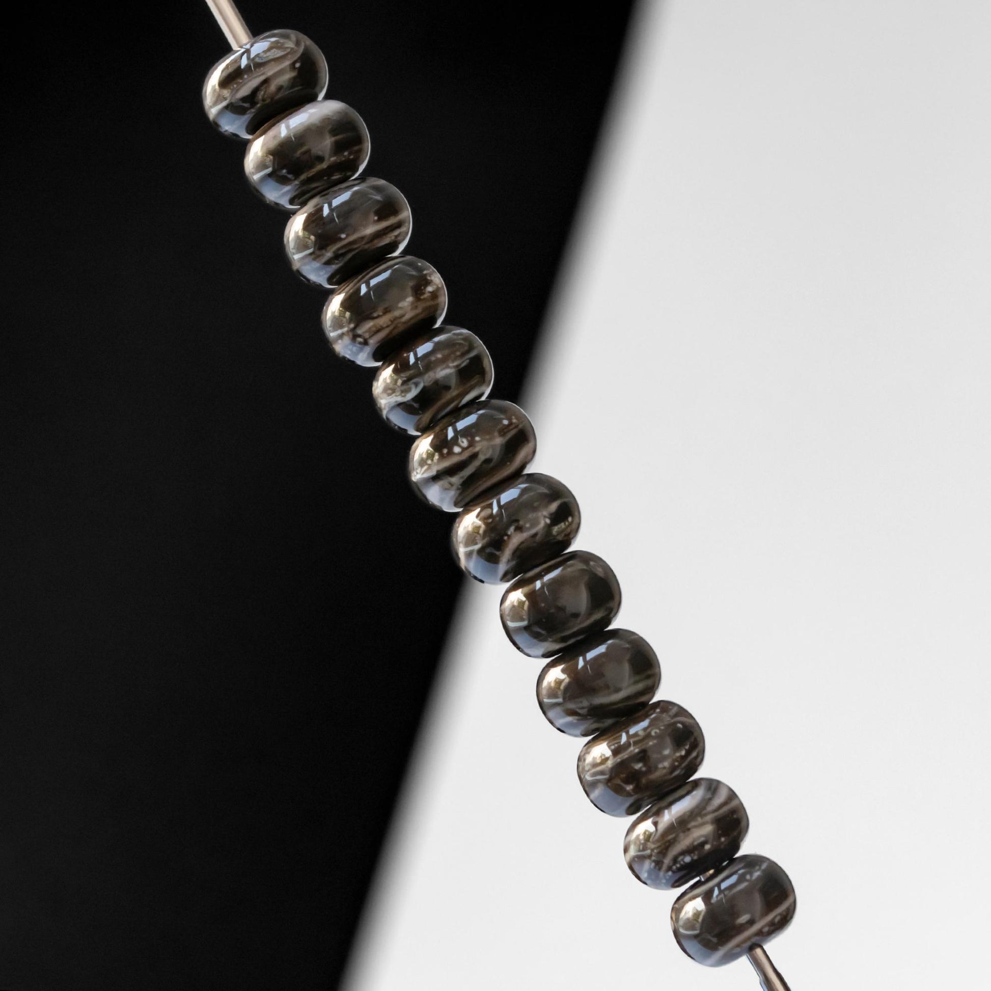Gray Brown Beige Marble Handmade Lampwork Glass Spacer Set