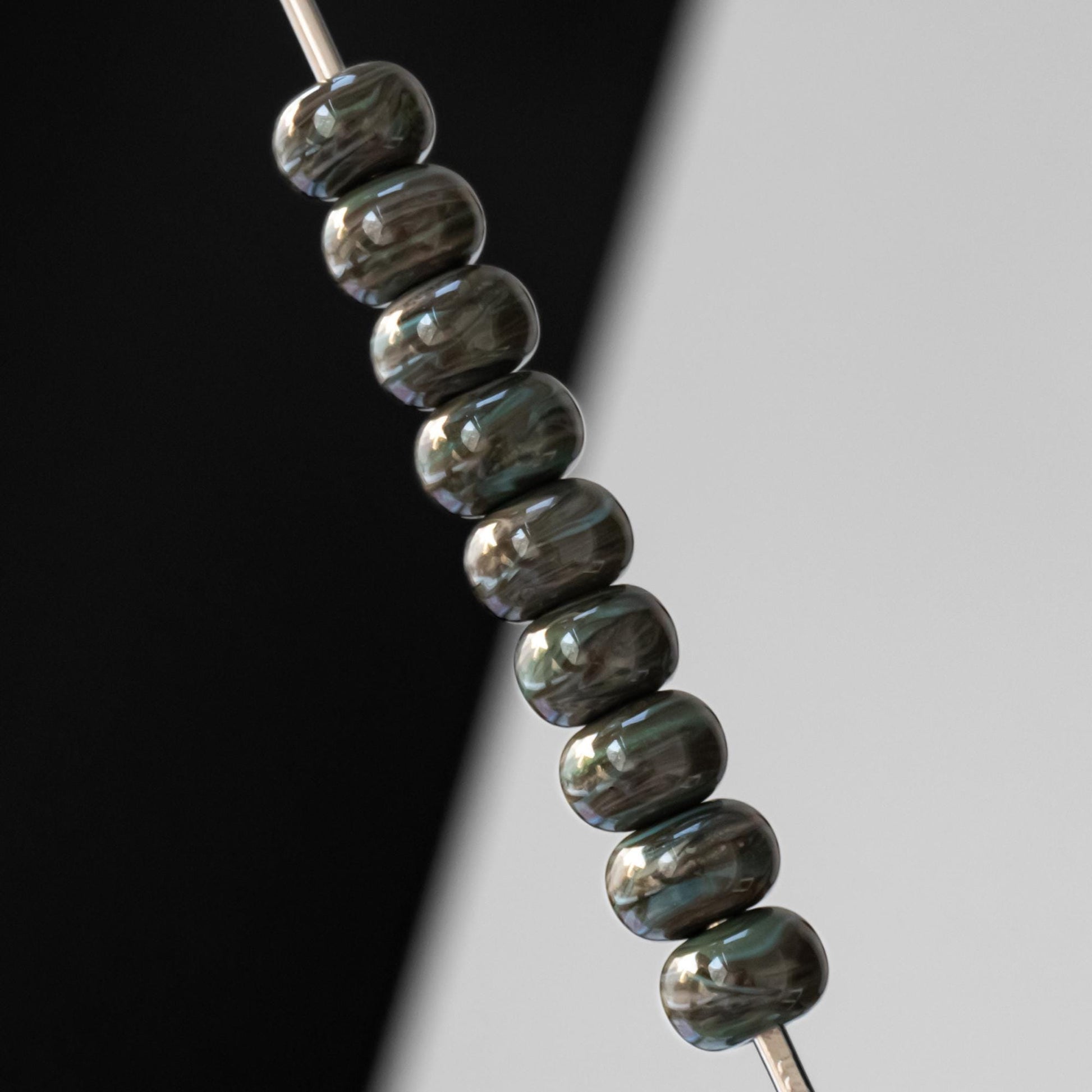 Gray Brown Teal Handmade Lampwork Glass Spacer Set