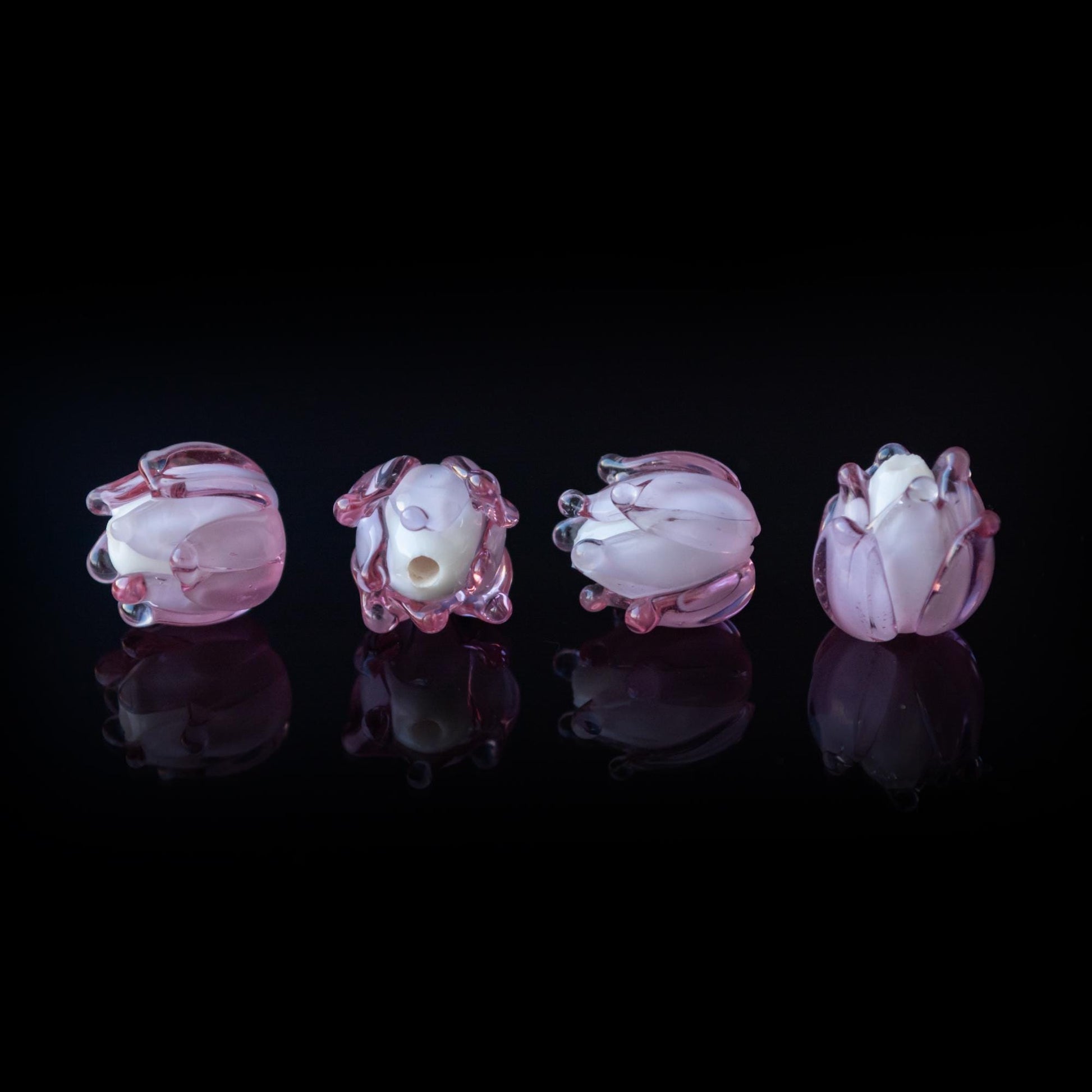 Discover the charm of these handmade pink glass beads, beautifully crafted into the form of blossoming buds. Each bead boasts a layered petal design, infused with a soft pink hue that exudes elegance and femininity. Crafted from durable soft glass, these beads are built to last, ensuring that your jewelry pieces retain their beauty over time. These pink glass beads are perfect for creating unique bracelets, necklaces, and earrings, adding a touch of floral sophistication to any handmade jewelry project. Ideal for artisans and crafters, these beads offer a stunning addition to any DIY jewelry collection, blending artistry and durability in every piece.